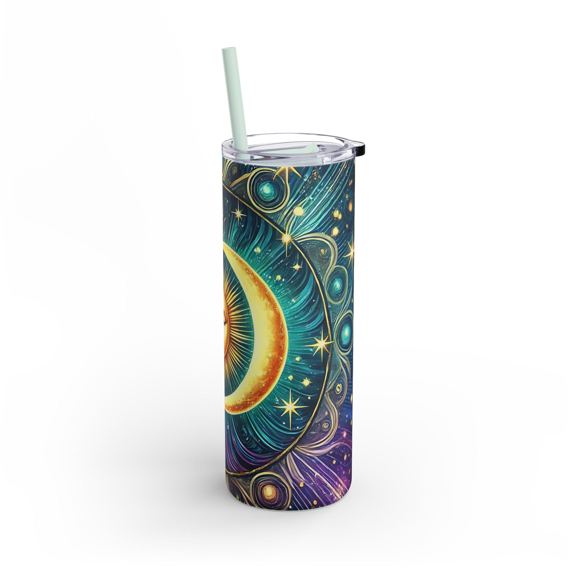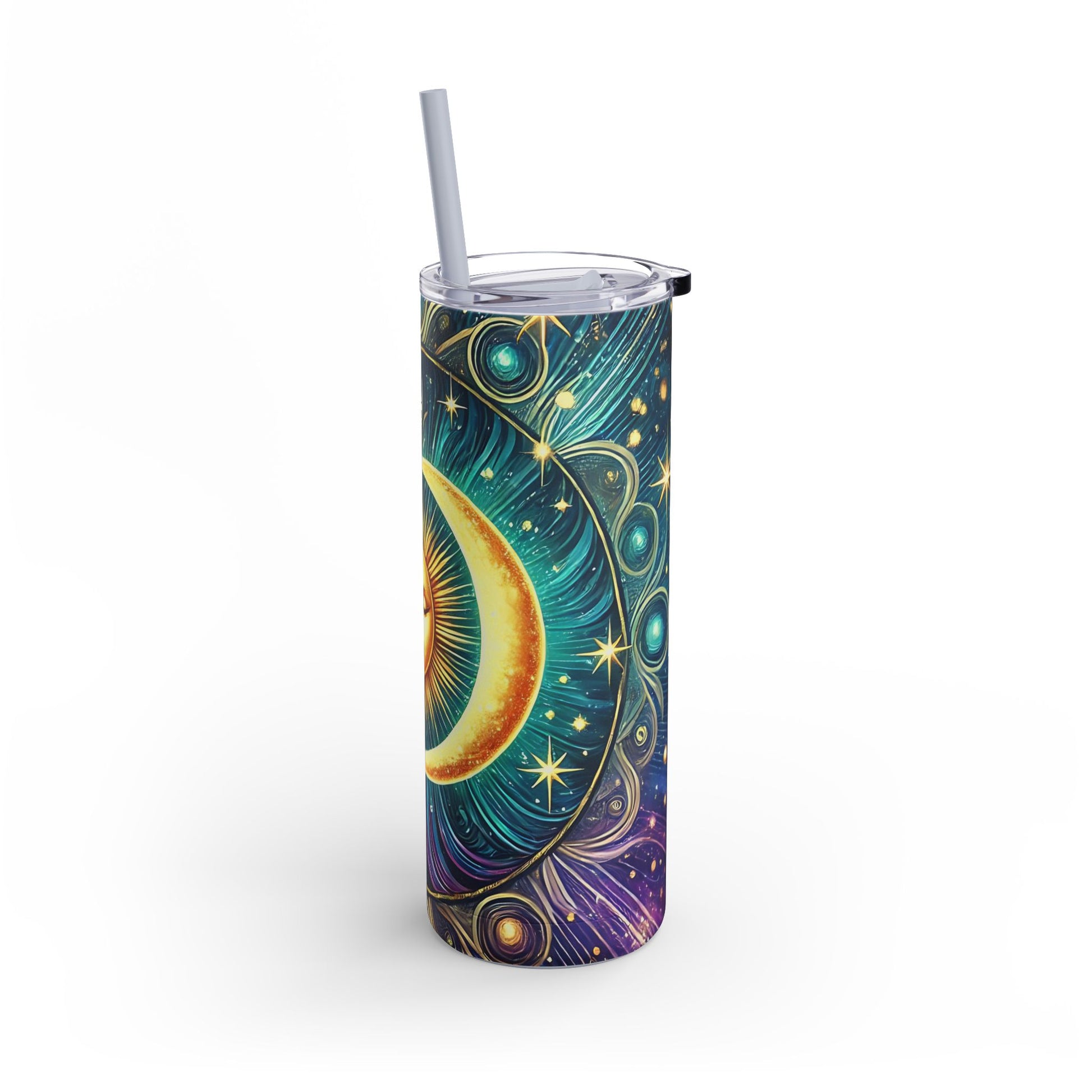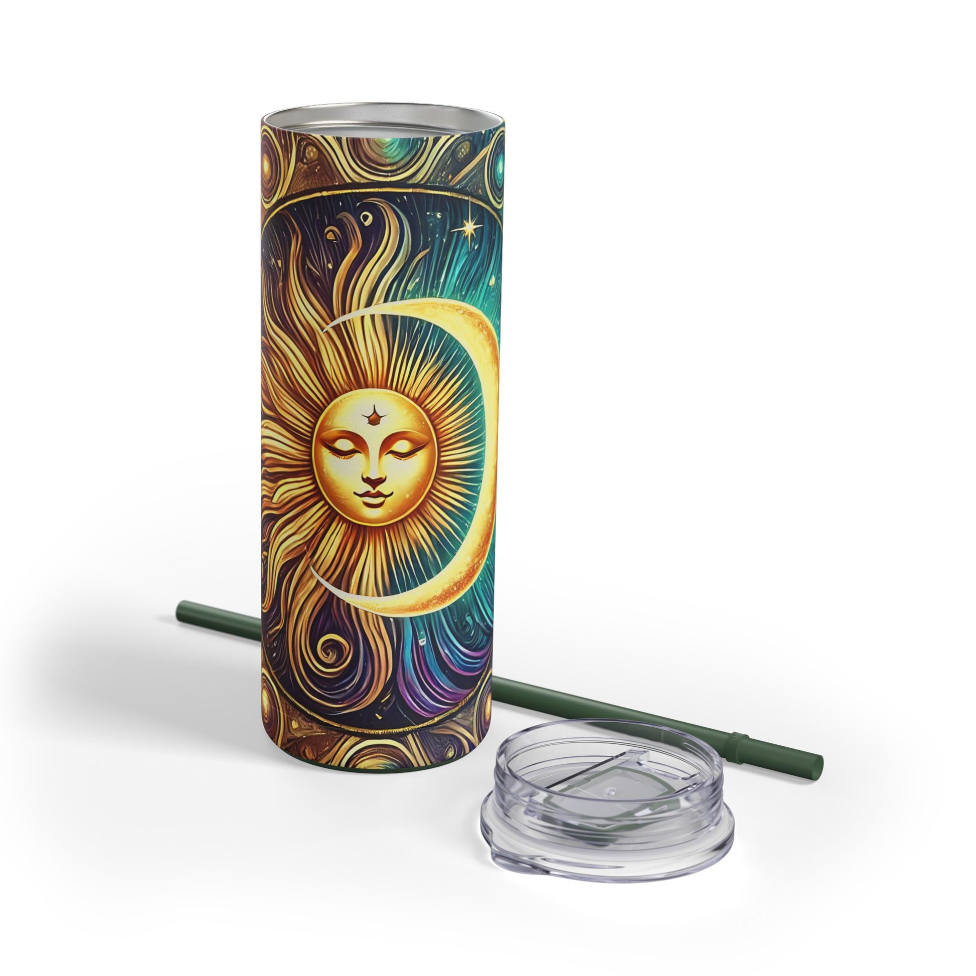 Celestial Sun Moon Tumbler - Mystical Cosmic Design | Spiritual Gift 20oz Skinny Matte Tumbler