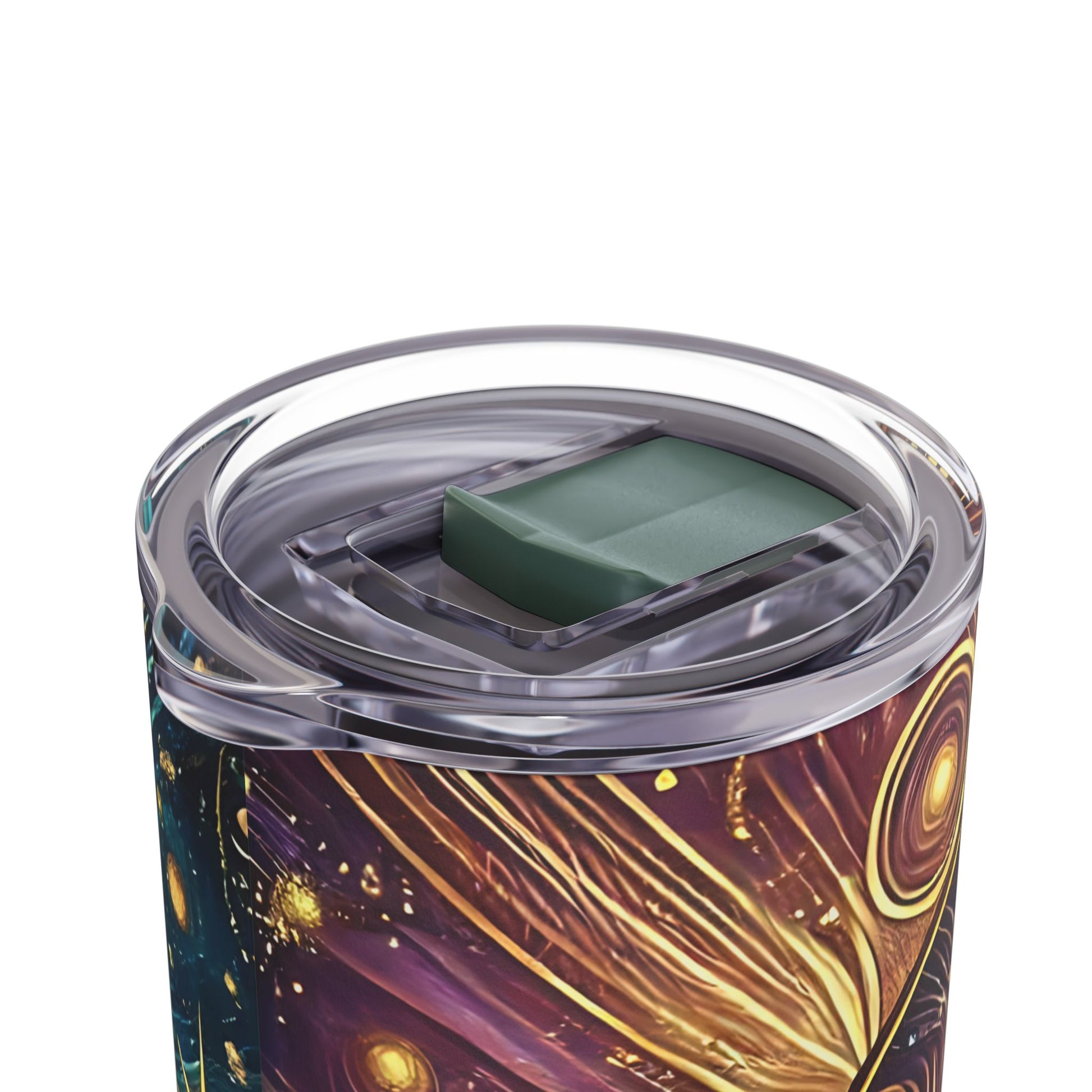 Channel the mystical power of the sun and moon with this enchanting celestial tumbler. Featuring a radiant sun face surrounded by swirling cosmic patterns in rich golds, teals, and purples, this design is perfect for spiritual souls, astrology lovers, and anyone who feels connected to the universe's magic.