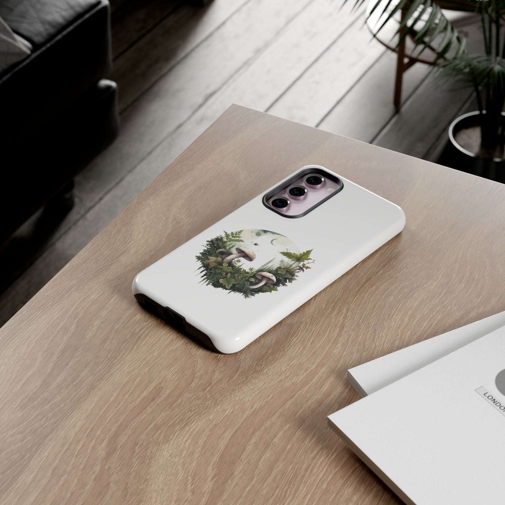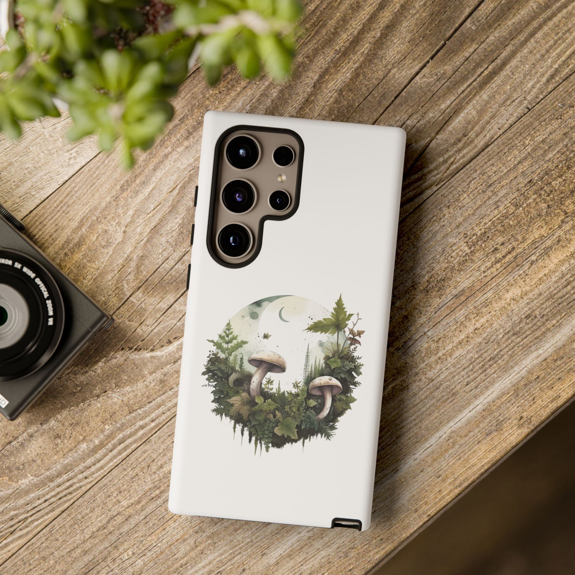 Moonlit Mushroom Tough Phone Case – Minimalist Forest Magic