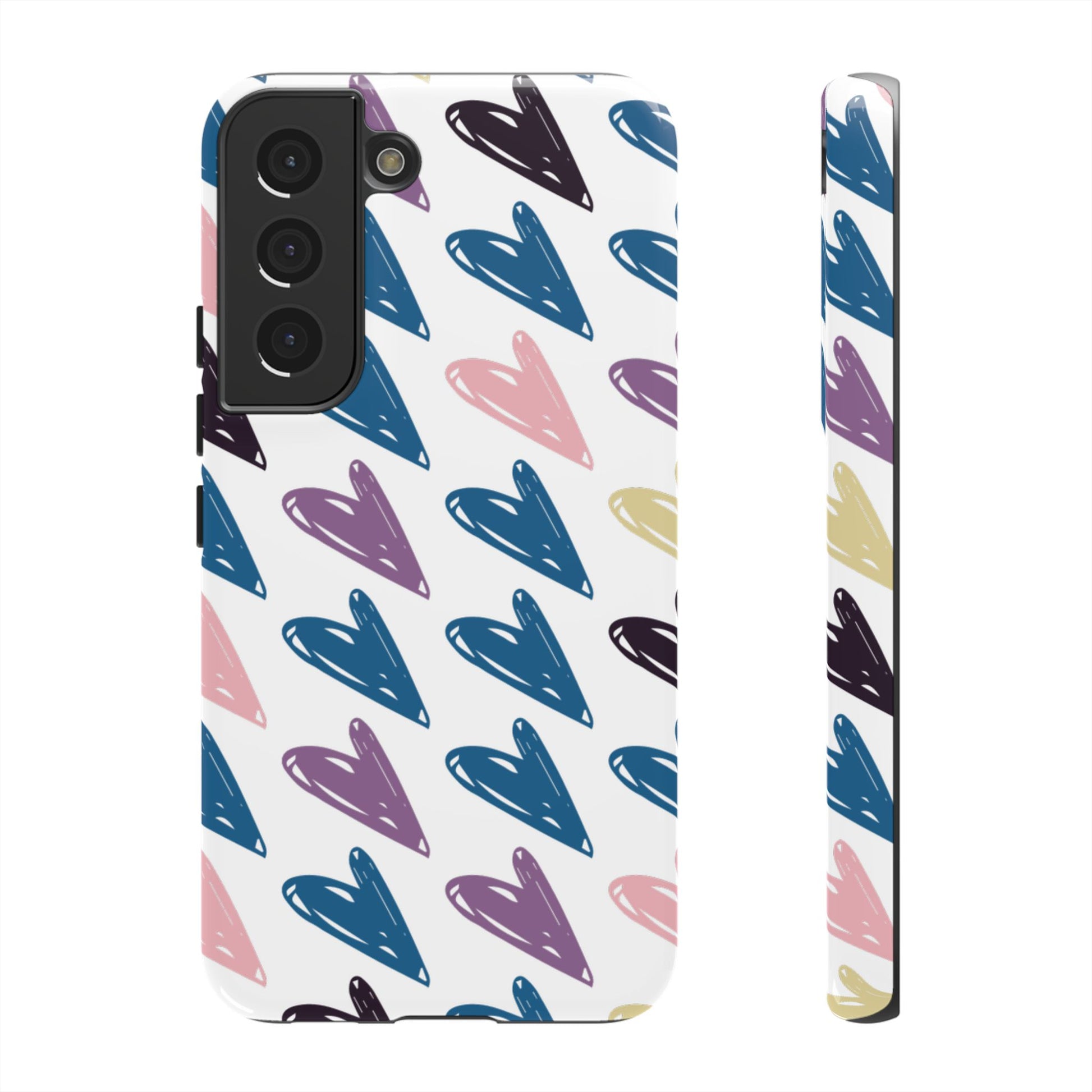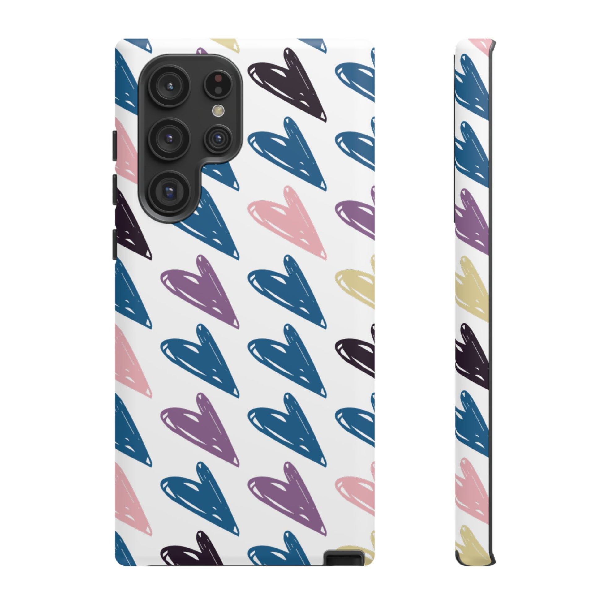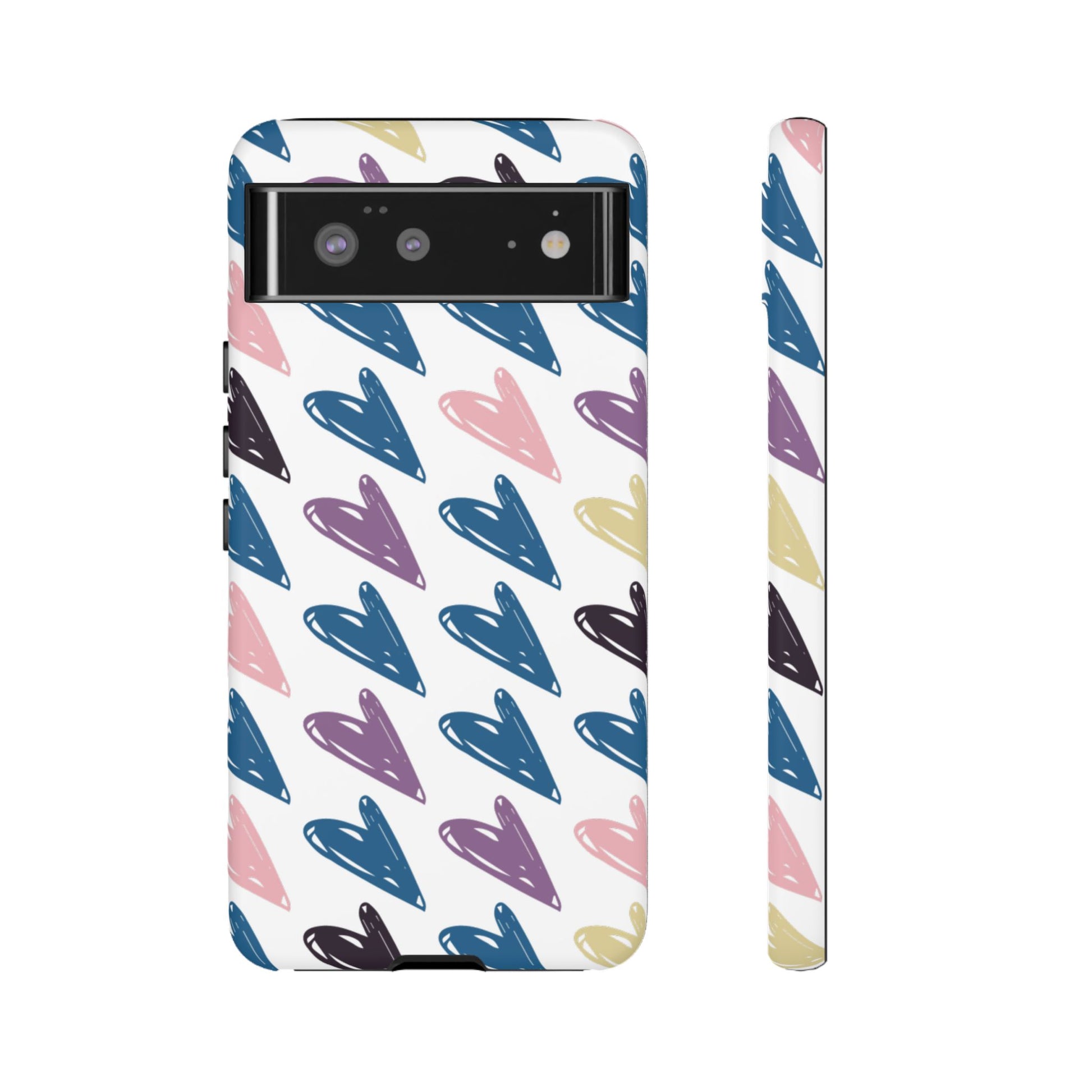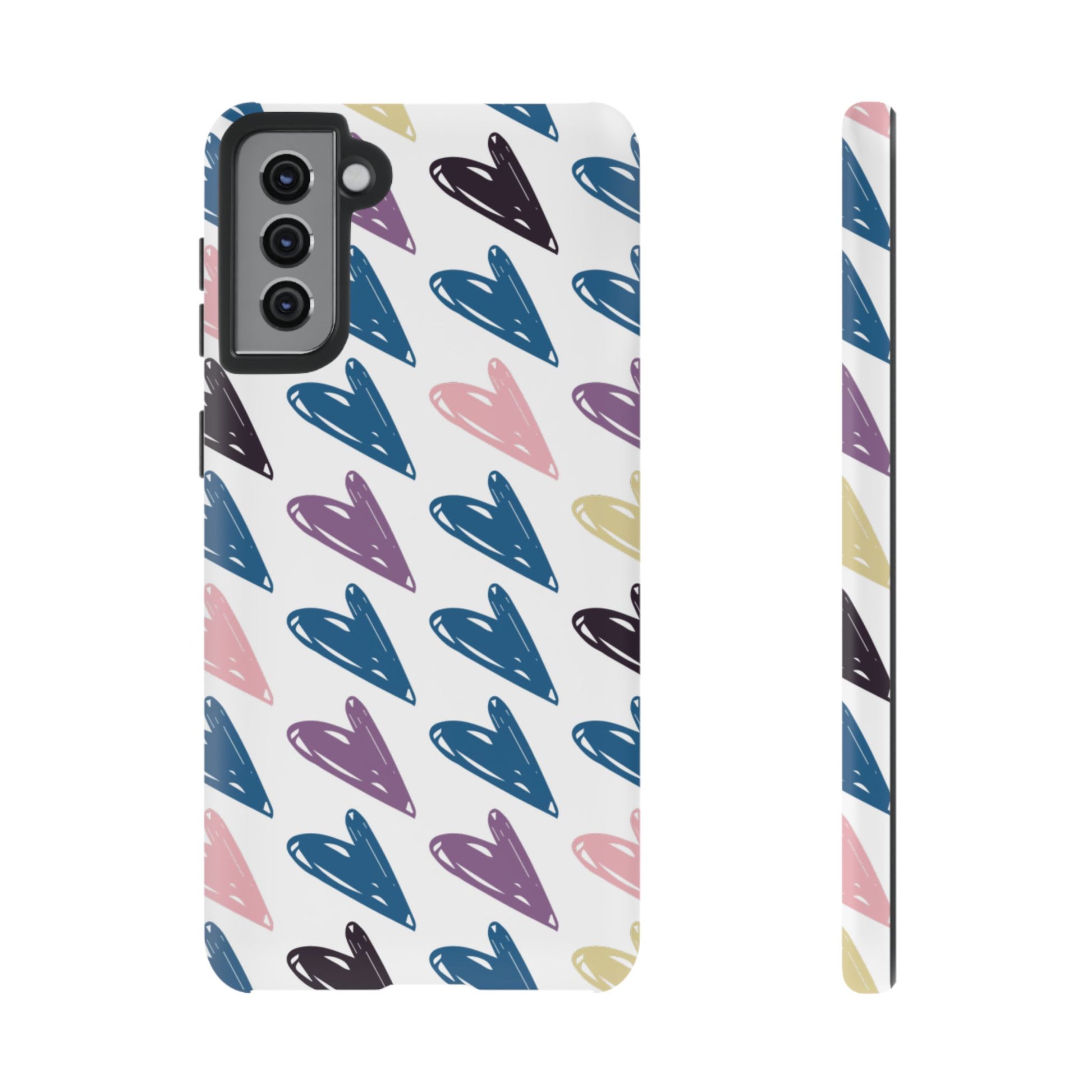 Accessorize your phone without sacrificing security thanks to this Pretty Hearts Tough Case. These phone cases are made with impact-resistant polycarbonate outer shell and feature an inner TPU liner for extra protection against accidental drops. Keep your phone secure & stylish.