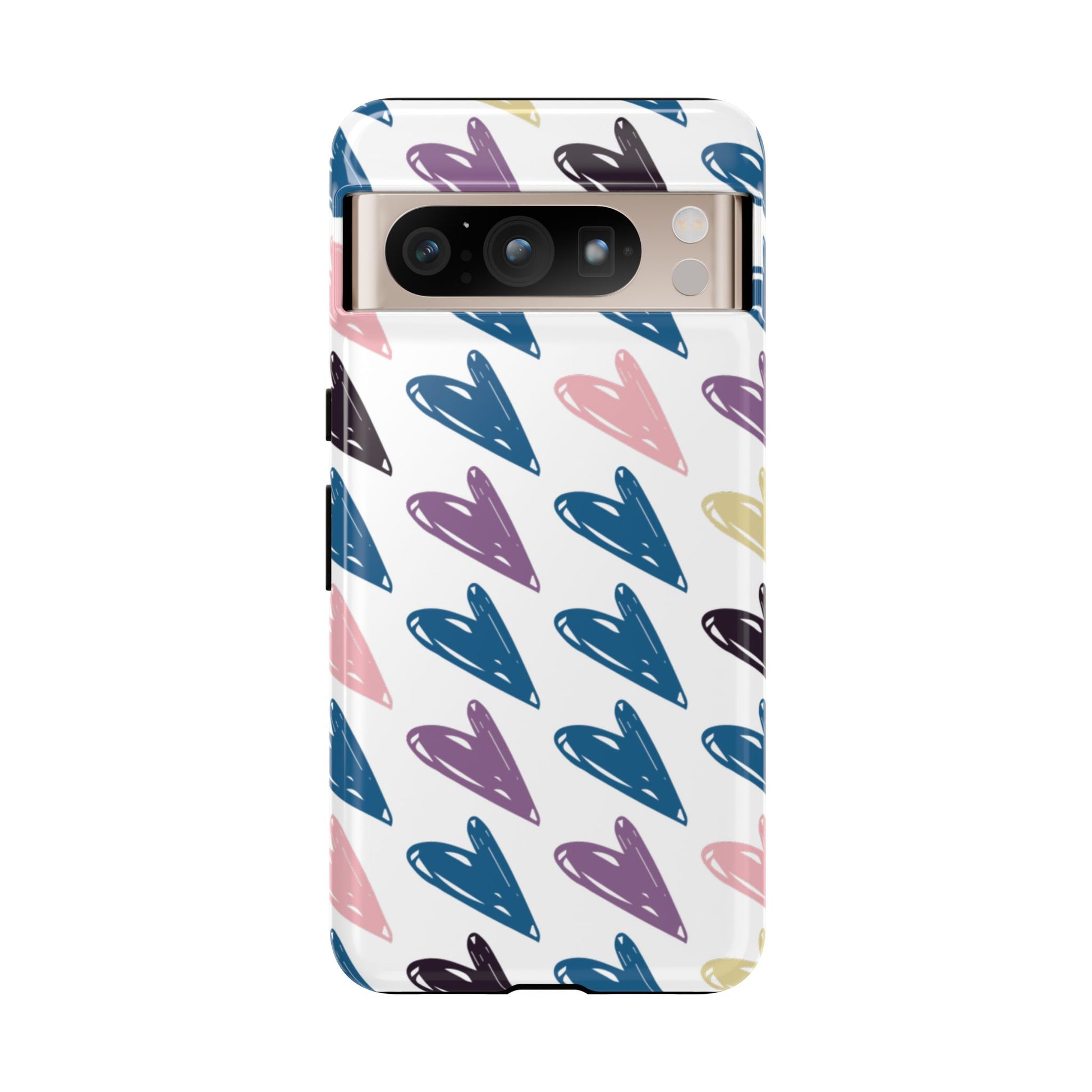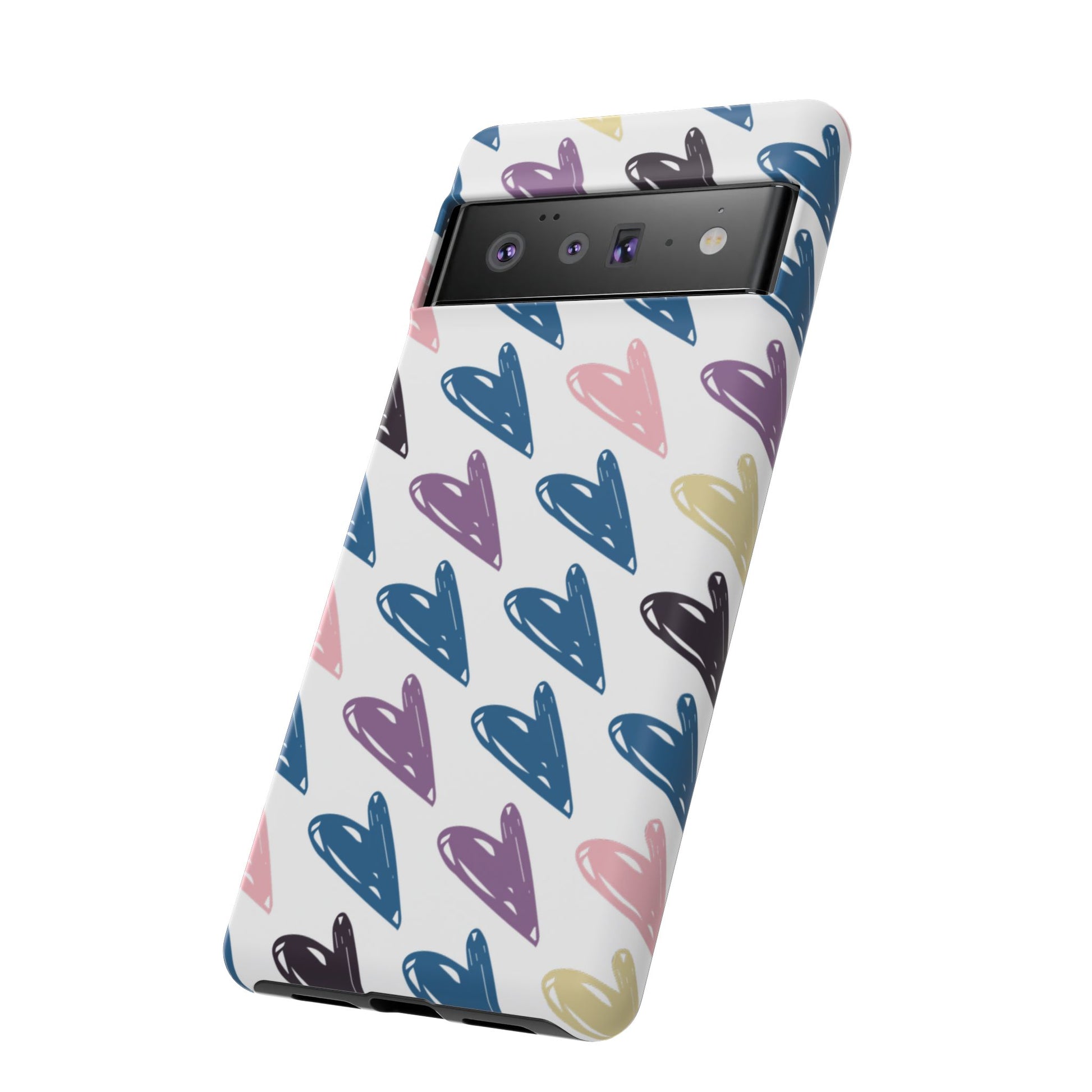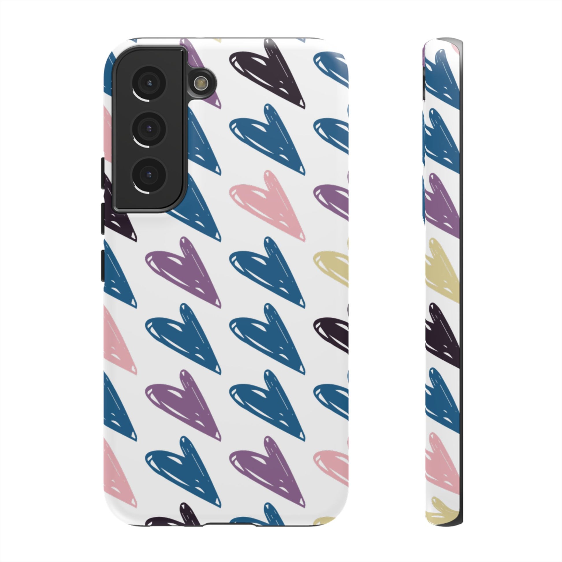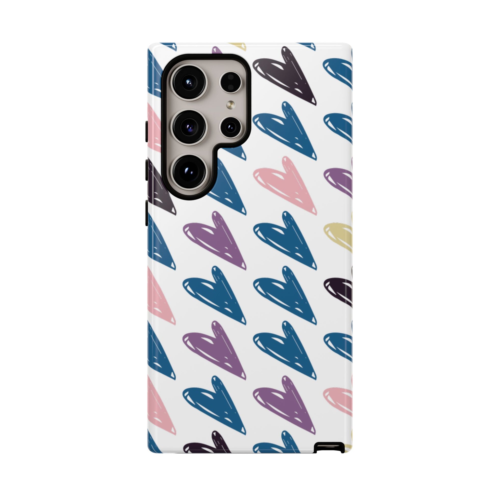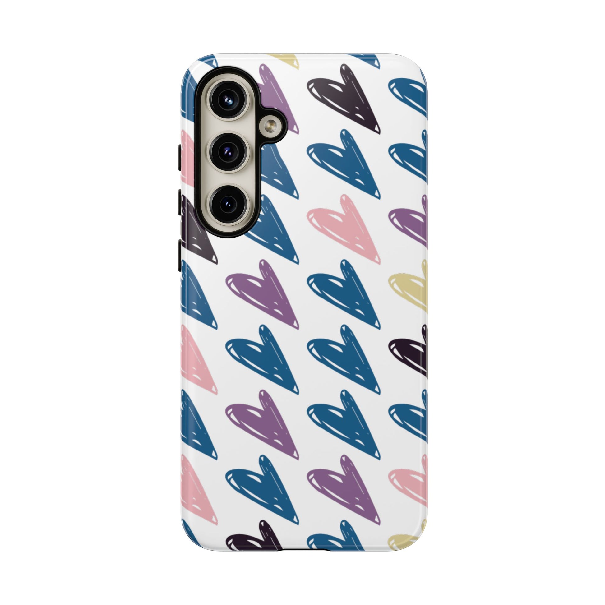 Accessorize your phone without sacrificing security thanks to this Pretty Hearts Tough Case. These phone cases are made with impact-resistant polycarbonate outer shell and feature an inner TPU liner for extra protection against accidental drops. Keep your phone secure & stylish.