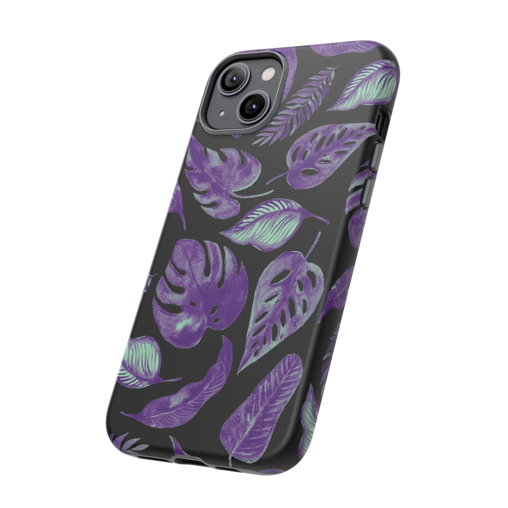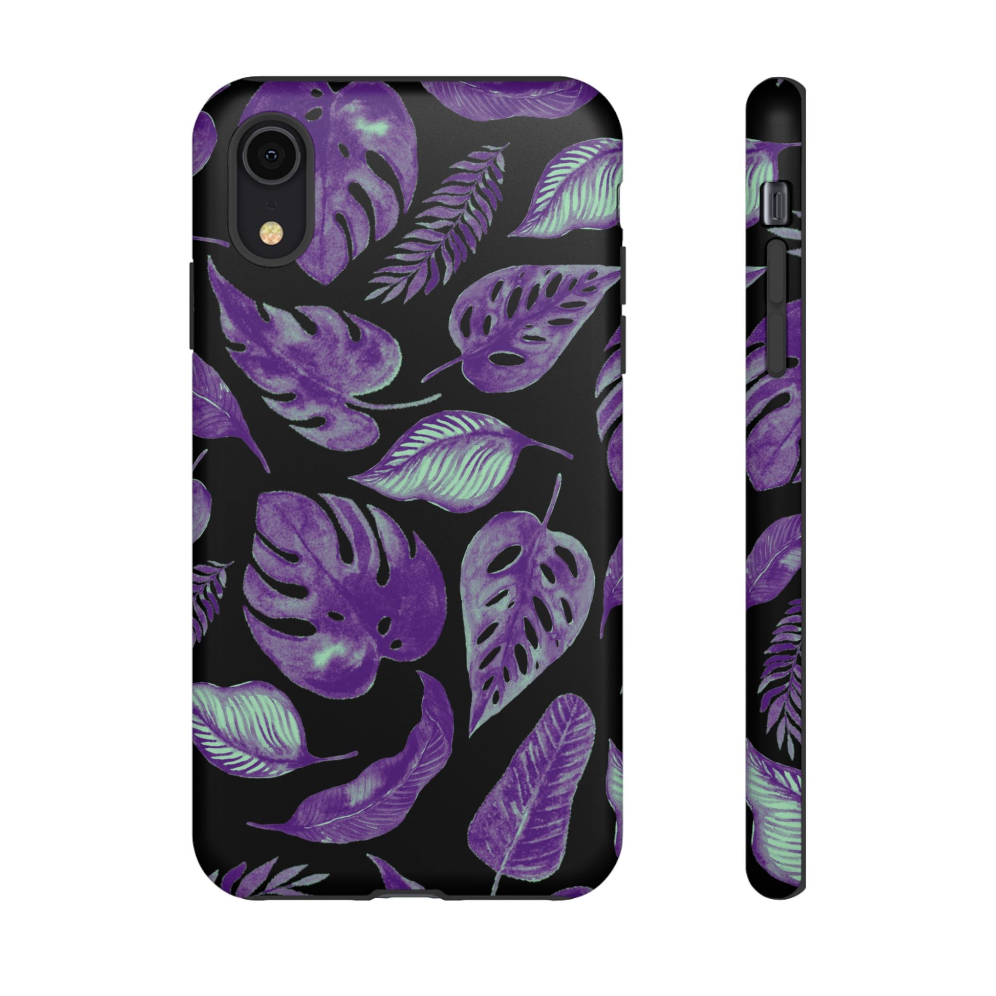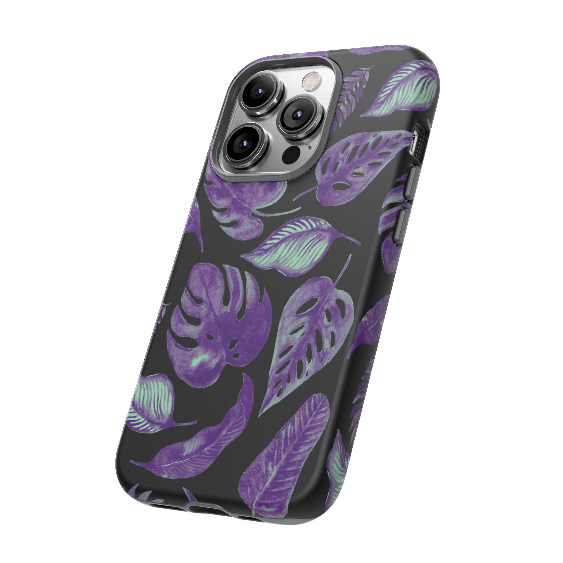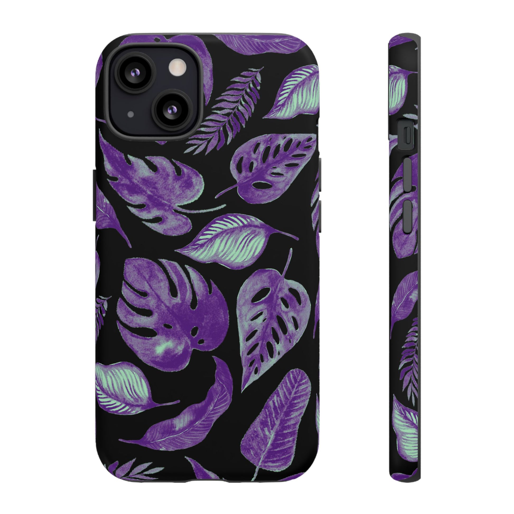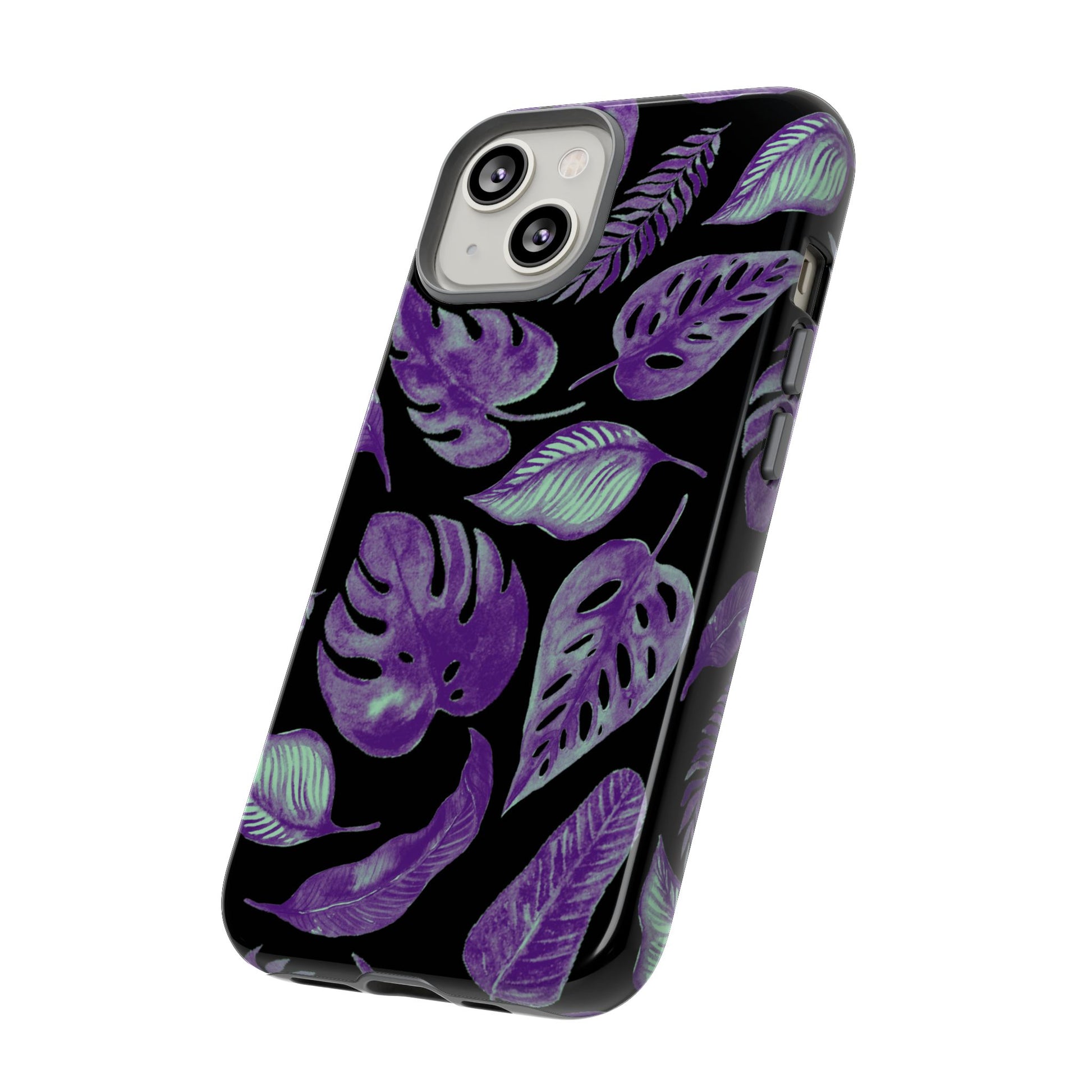 Purple & Mint Tropical Leaves on Black - Tough Case