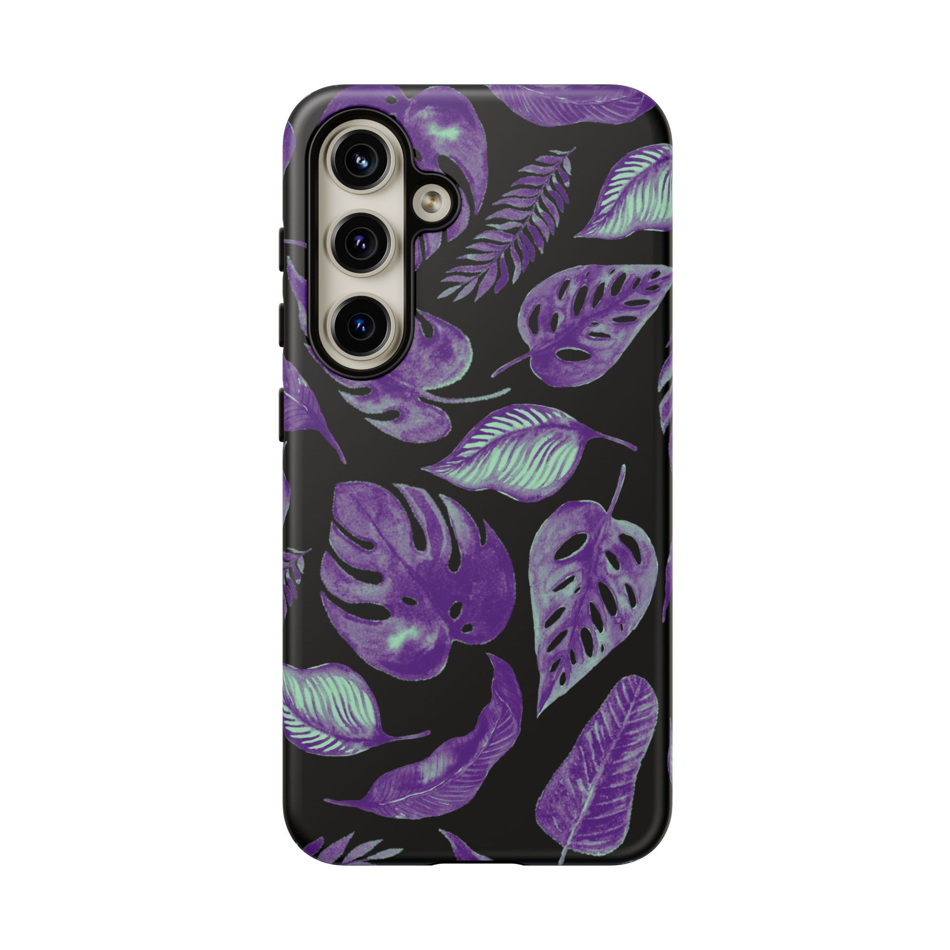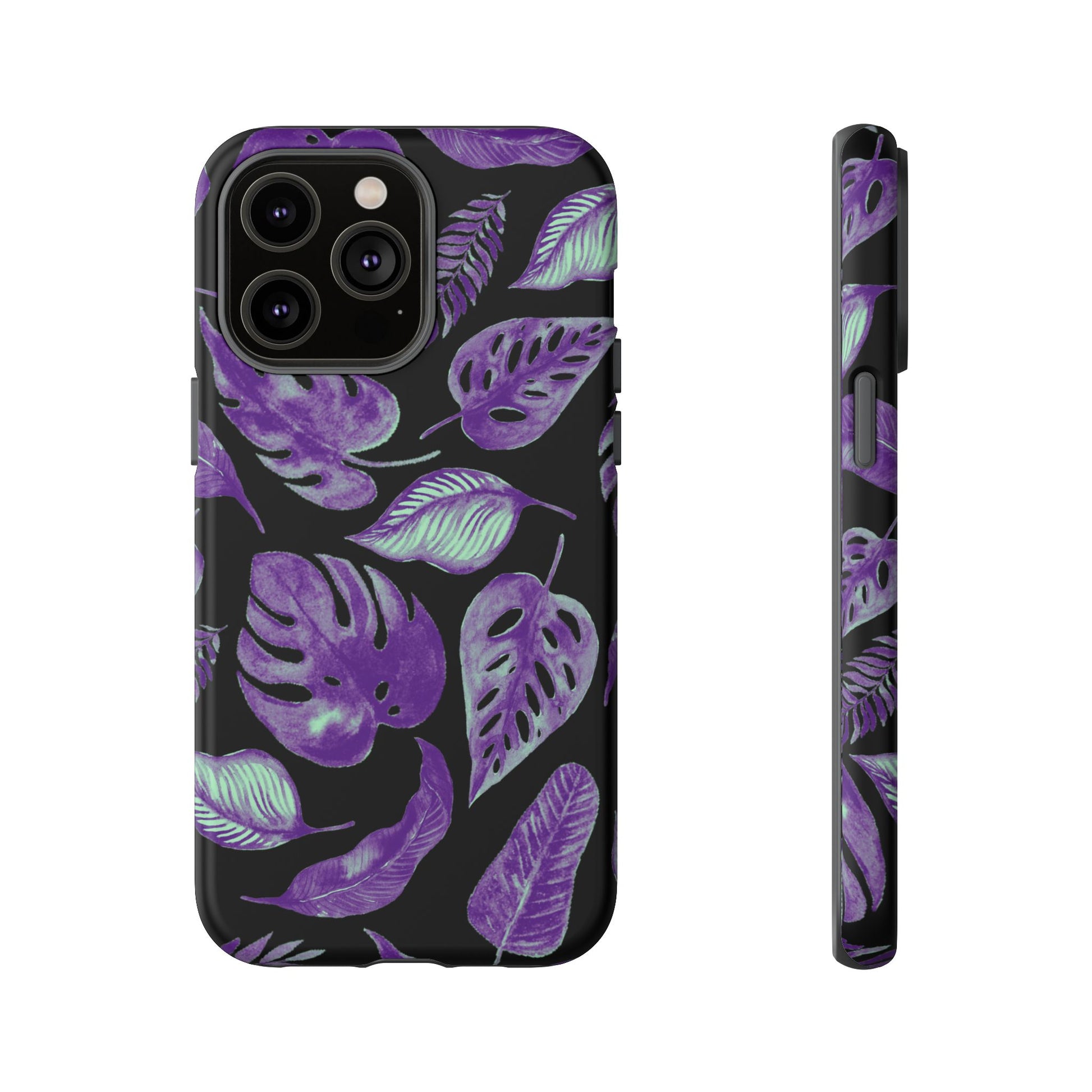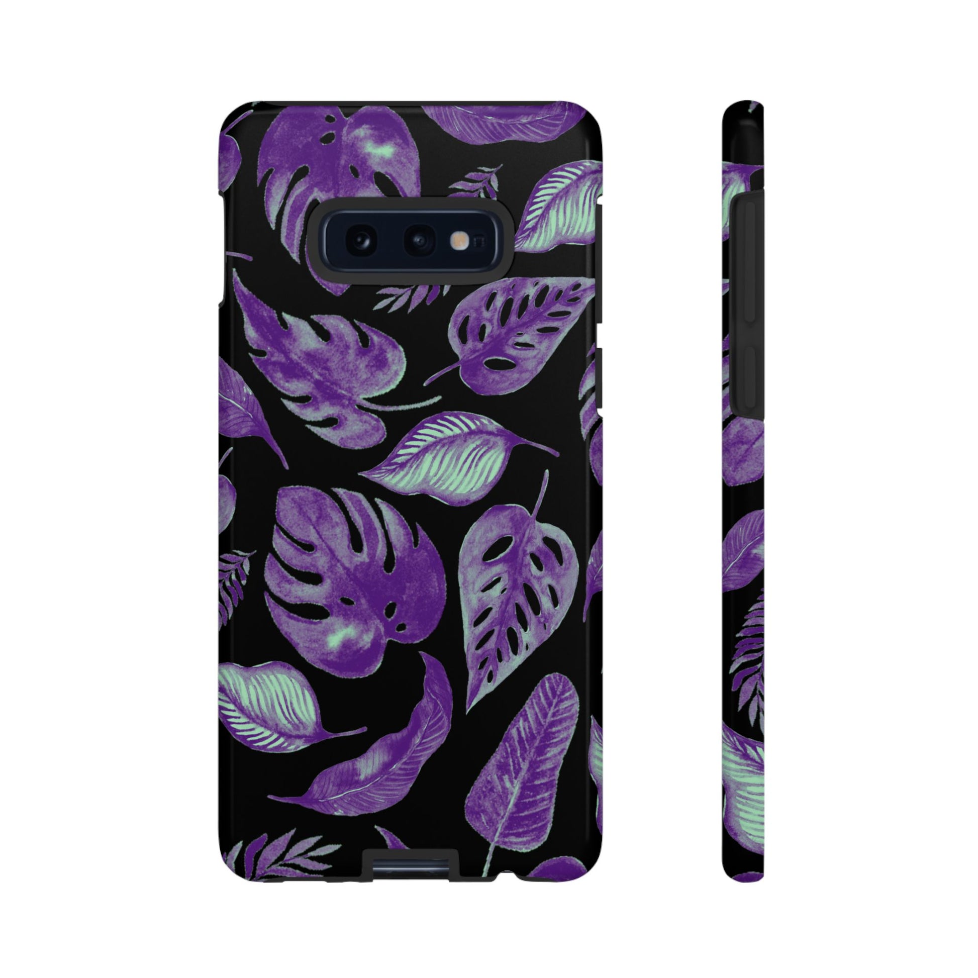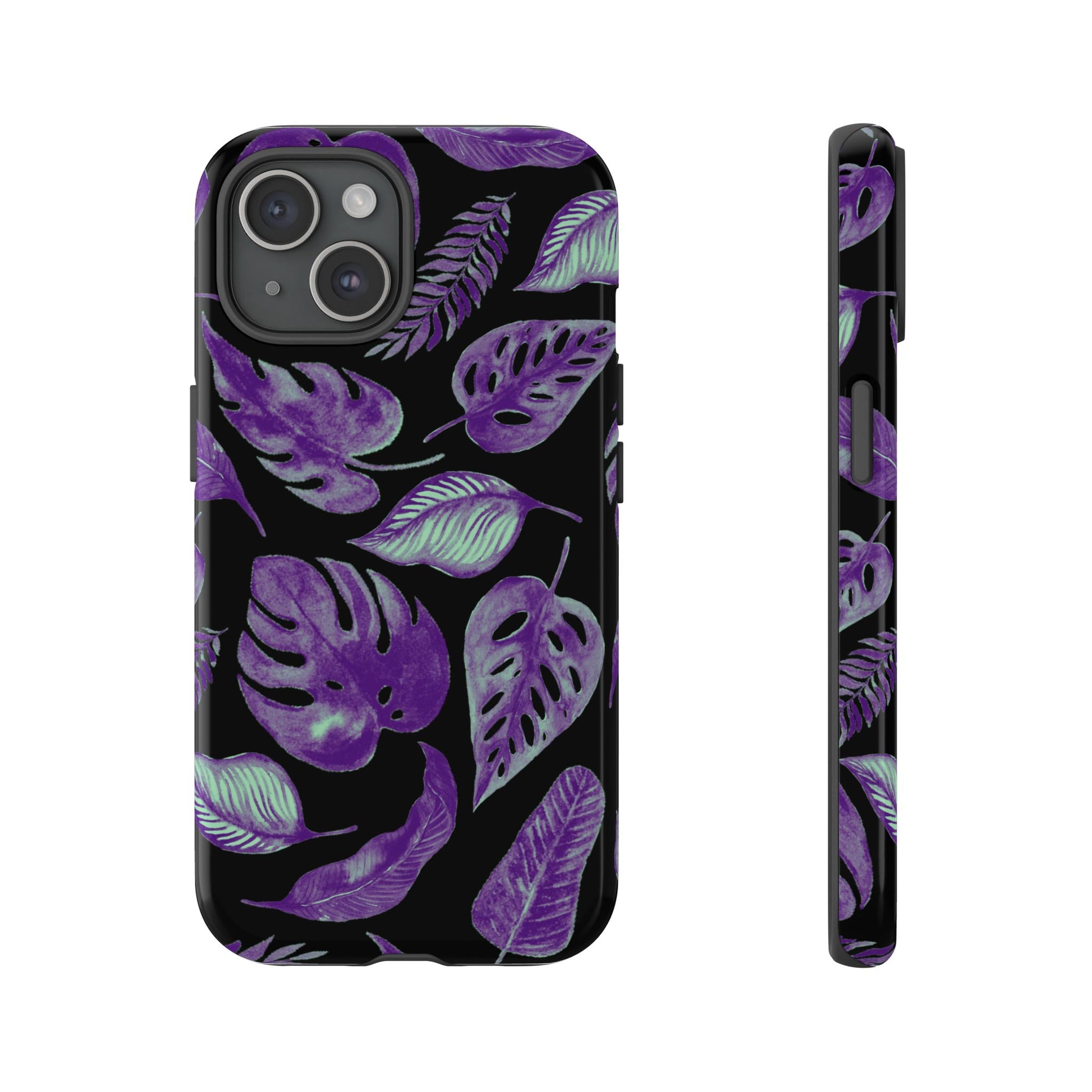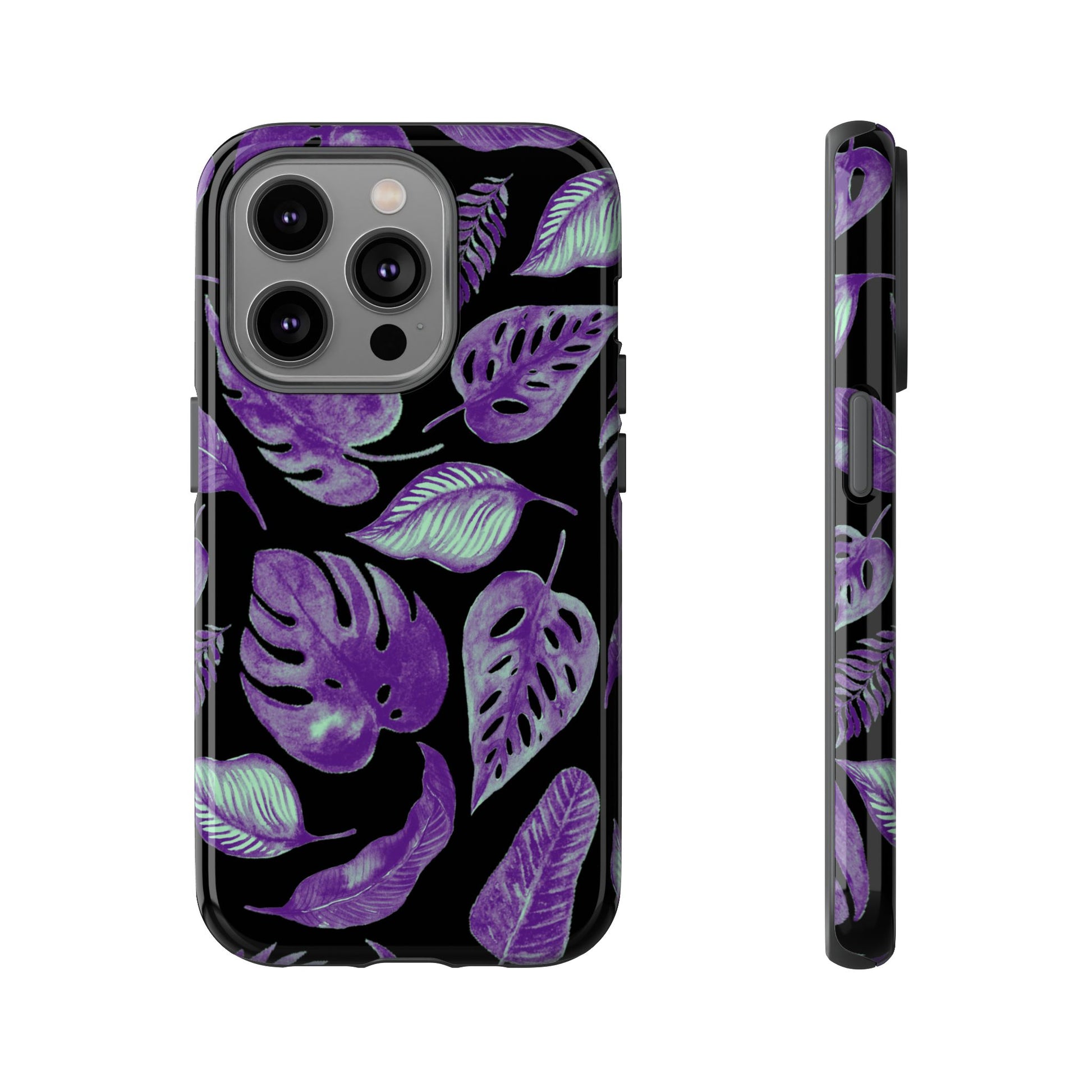 Purple & Mint Tropical Leaves on Black - Tough Case