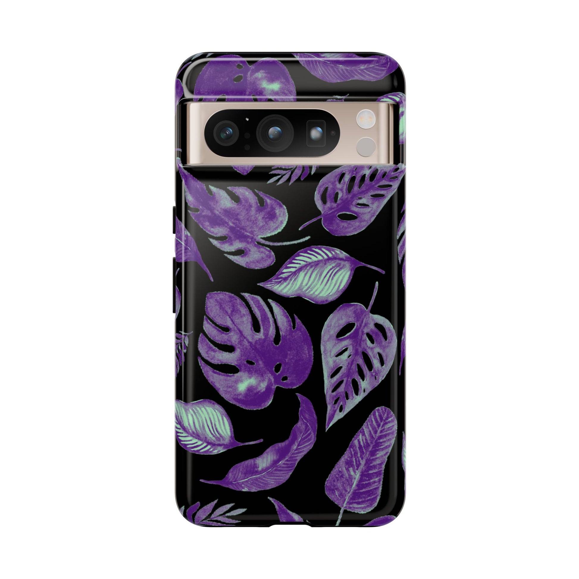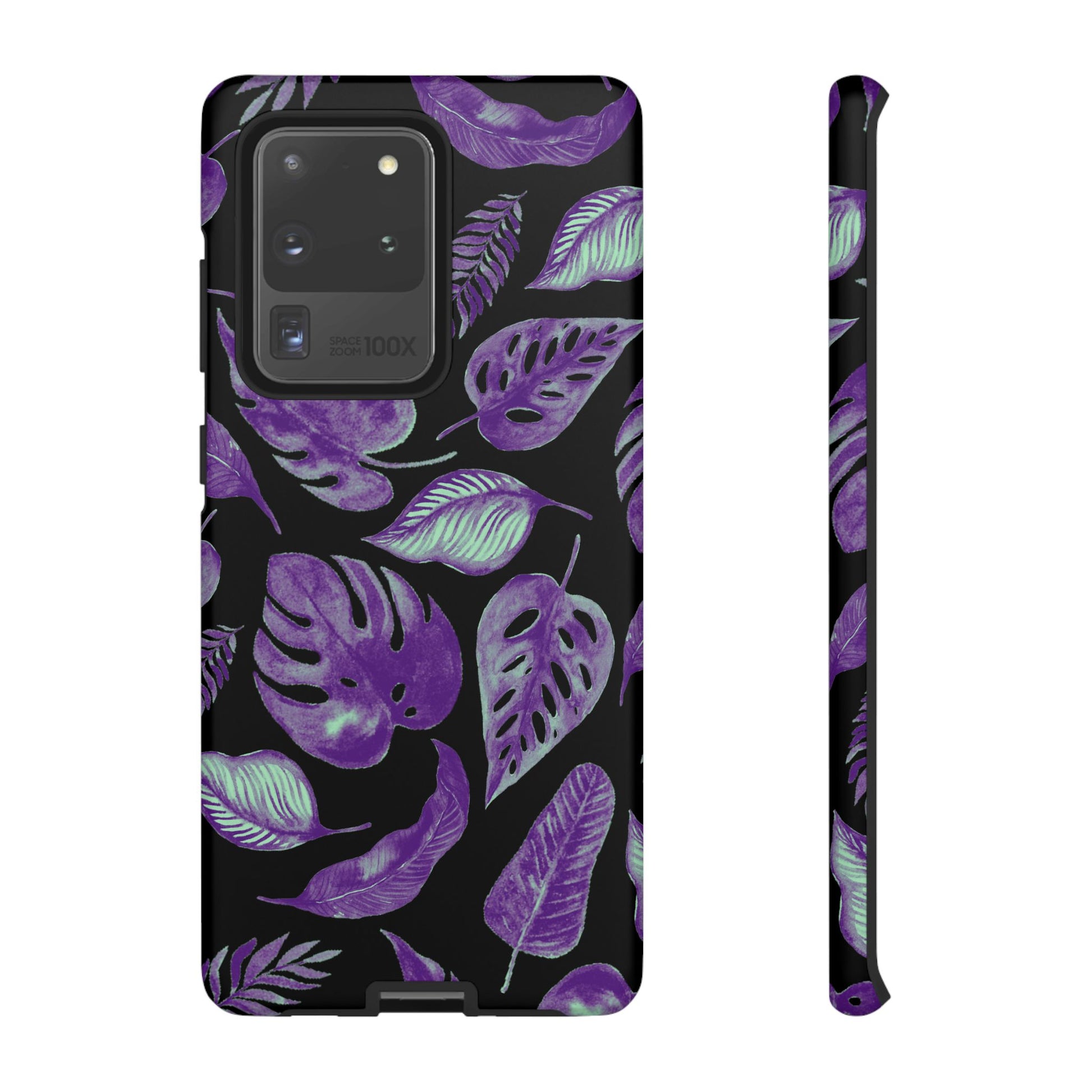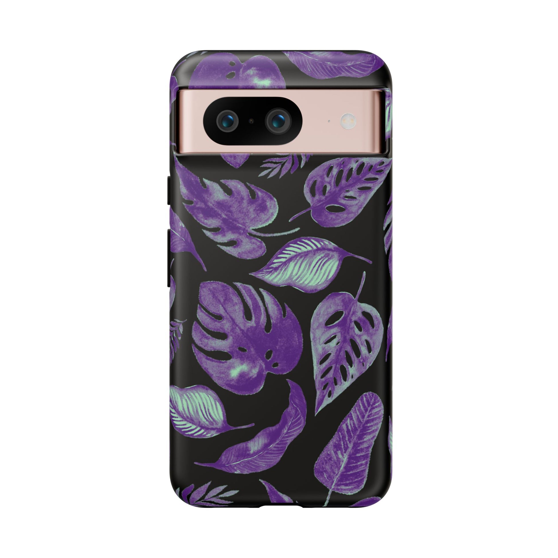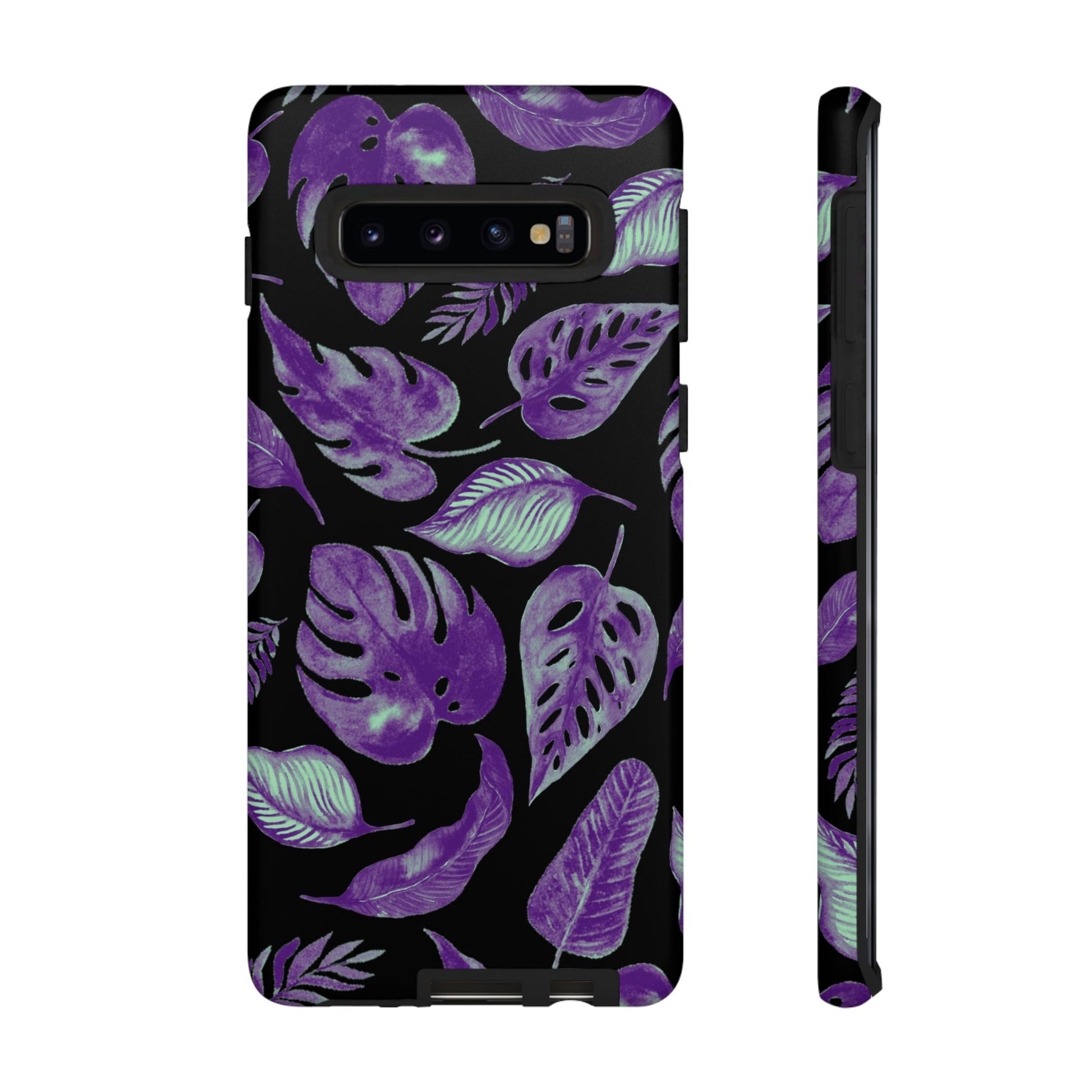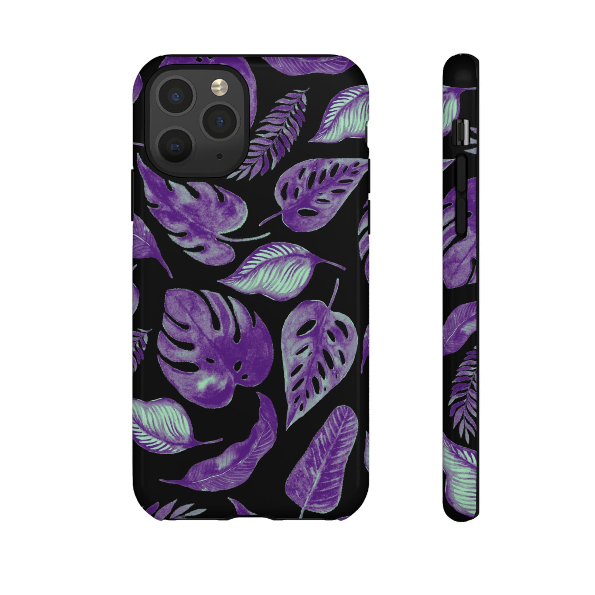 Purple & Mint Tropical Leaves on Black - Tough Case